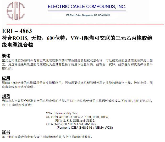 三元乙丙橡胶为基料并含有过氧化物交联剂的可着色阻燃的颗粒状混合物,可以在常规的连续硫化生产线上加工。用这种绝缘所制造的电缆被认为是具有包括了高温下优良耐热,耐辐射,抗冲,耐热变形和优良弹性的平衡性能。